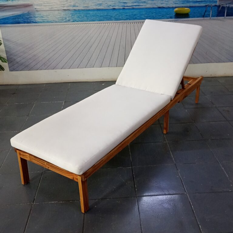 Descripción: Camastro de madera natural para exterior modelo Malibu con sistema de inclinación en el respaldo de 4 posiciones. Los cojines son de poliuretano de alta densidad con forro de tela acrílica para exteriores. (tono a escoger, se venden por separado). Marca Mubox