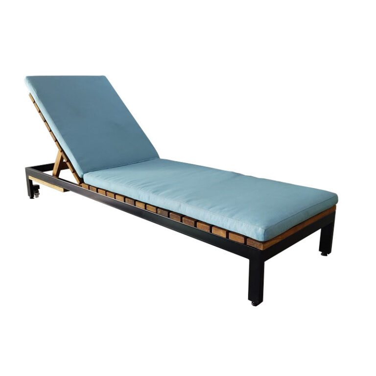 Descripción: Camastro con ruedas de madera natural para exterior y bastidor de acero acabado pintura electrostática (tono a escoger) modelo Mediterráneo con sistema de inclinación en el respaldo de 4 posiciones. Los cojines son de poliuretano de alta densidad con forro de tela acrílica para exteriores. (tono a escoger, se venden por separado).