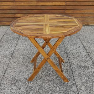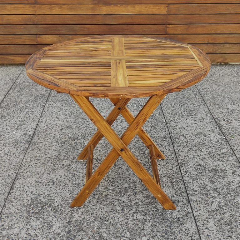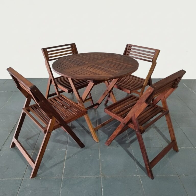 Descripción: Comedor redondo con mesa y sillas plegables de madera natural para exterior para 4 personas Marca Mubox.