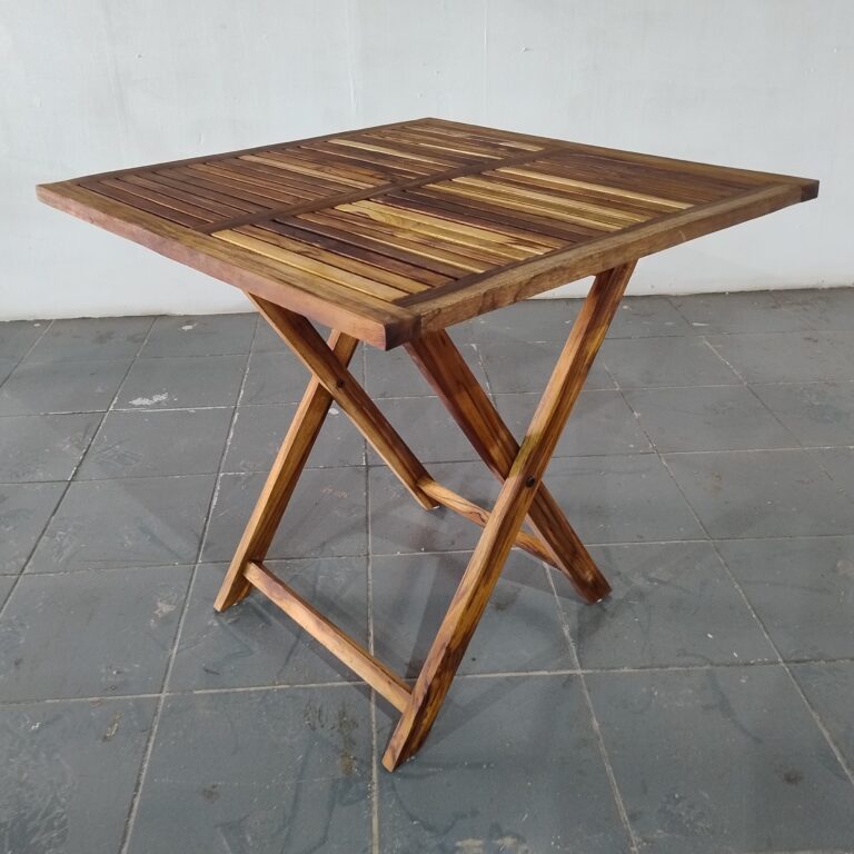 Medidas: Mesa: Largo:80 cm. Ancho:80 cm. Alto:75 cm., Silla plegable: Frente:49 cm. Ancho:63 cm. Alto:82 cm., Cojines: 5 cm. Espesor