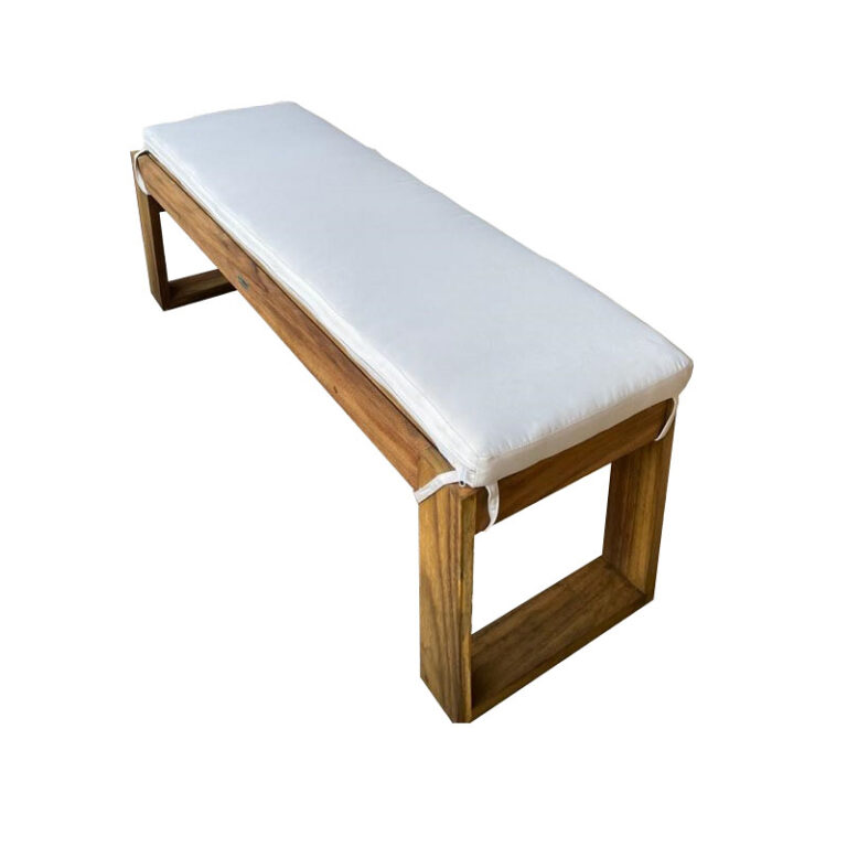 Descripción: Banca de madera natural para exterio para 2 personas modelo Ibiza. Los cojines son de poliuretano de alta densidad con forro de tela acrílica para exteriores. (tono a escoger, se venden por separado).